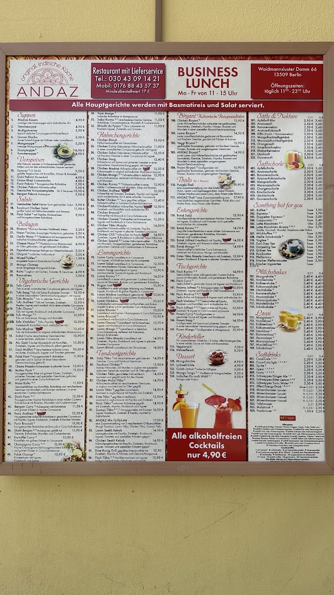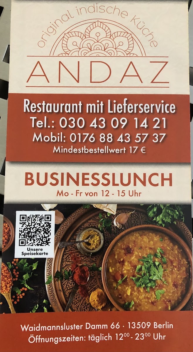 Introducing ANDAZ, an enchanting Indian restaurant nestled at Waidmannsluster Damm 66 in Berlin. This culinary gem captivates with a menu that embraces authenticity and vibrant flavors. Diners rave about the rich variety, from aromatic veg curries to succulent chicken tikka masala, each dish prepared with fresh ingredients that pay homage to traditional Indian cuisine.